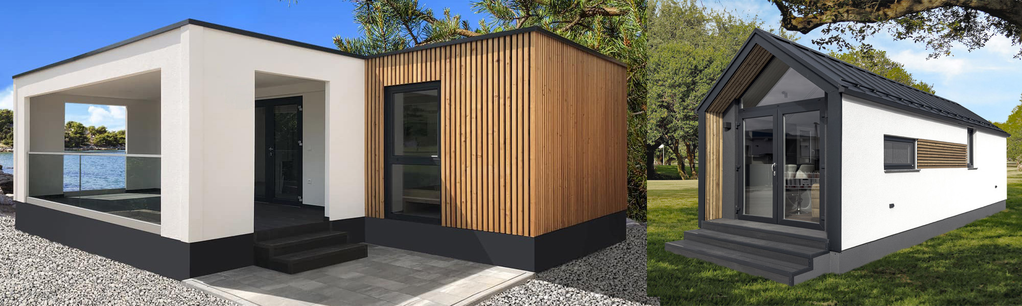 Winterfeste, Schlüsselfertige Modulhäuser - optional mit Terrasse, Pool oder autark mit Photovoltaik und Speicher